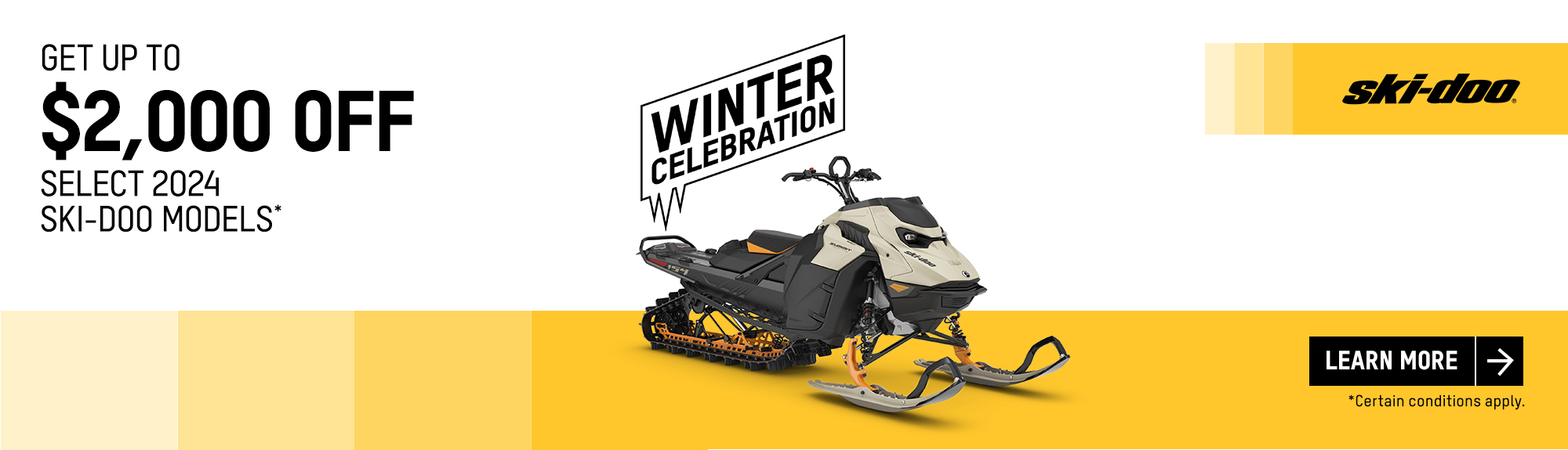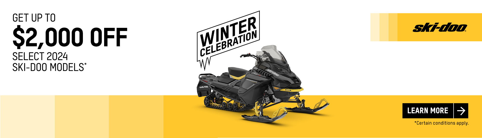 Get a rebate up to $2,000 on Full-Sized 2024 Ski-Doo and Lynx models (deep snow)