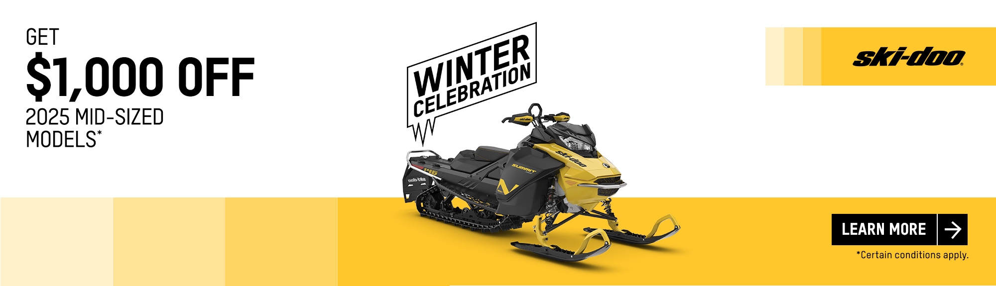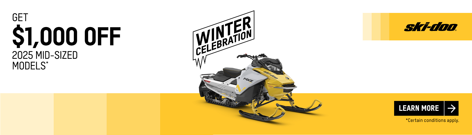 † Get a $1,000 rebate: Consumers who purchase a new and unused 2025 mid-sized Ski-Doo (NEO) are eligible to a $1,000 rebate.