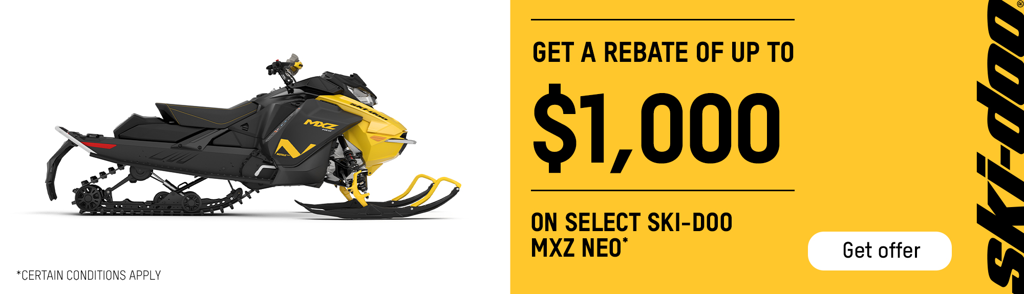 Get a rebate up to $1,000 on select Ski-Doo MXZ Neo