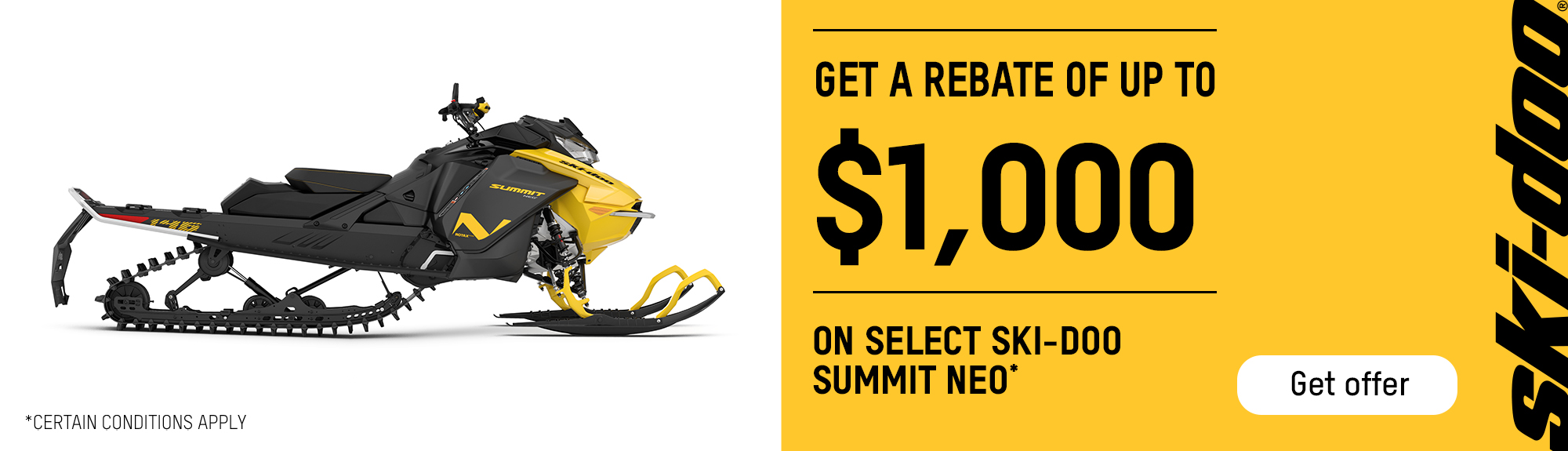 Get a rebate up to $1,000 on select Ski-Doo Summit Neo