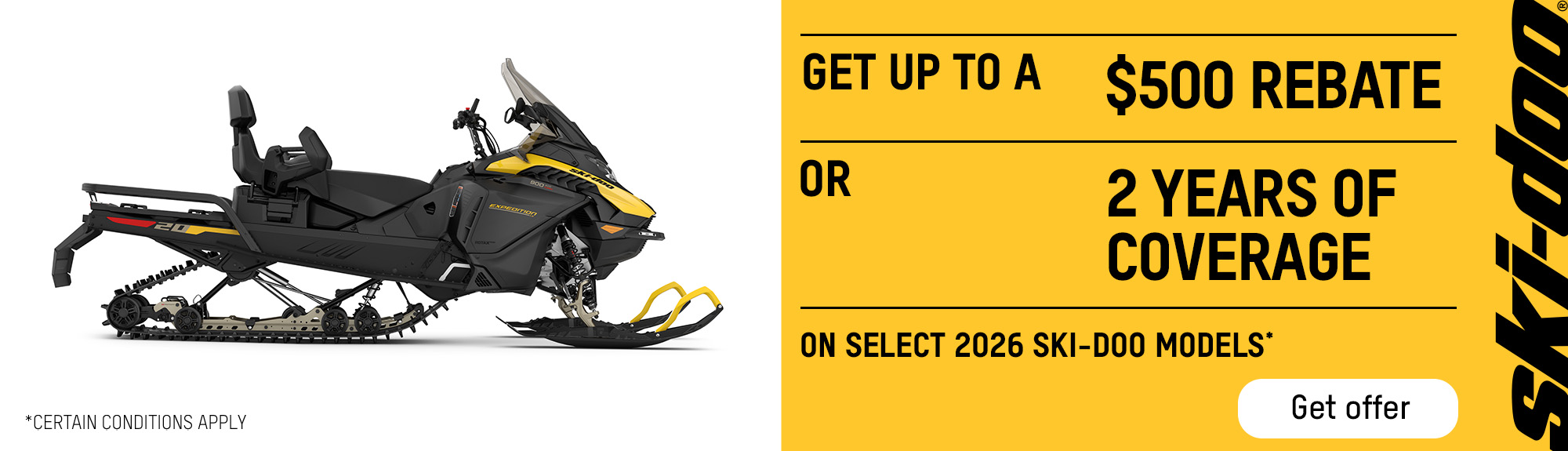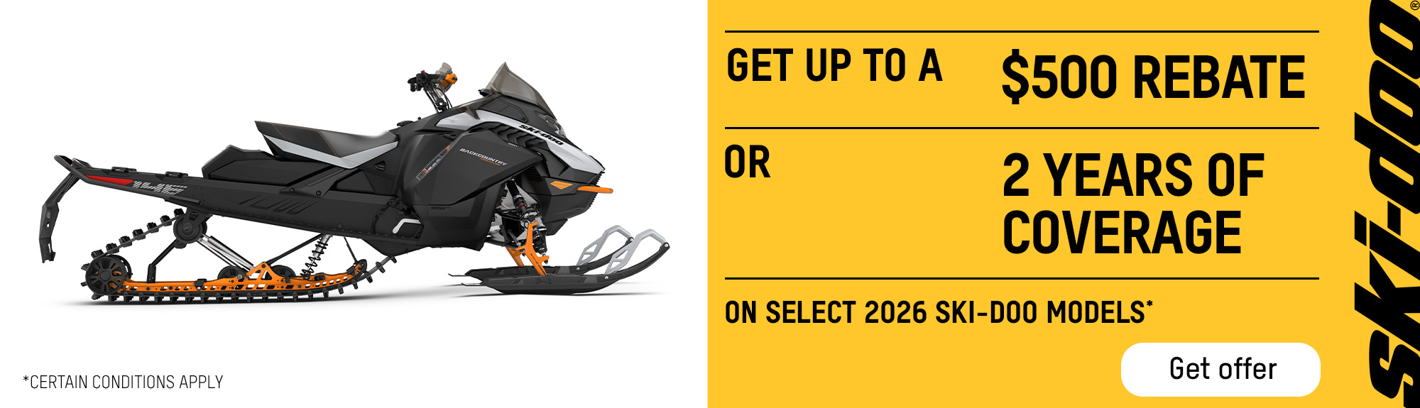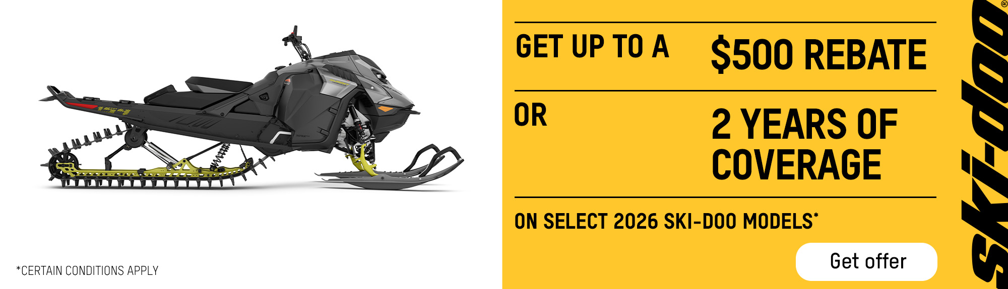 Get up to a $500 rebate or get 2 years of coverage on select 2026 Ski-Doo models