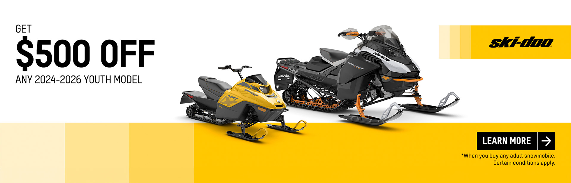 Buy an adult snowmobile or off-road vehicle and get $500 off a Youth vehicle -Ski-Doo Adult + ATV Youth